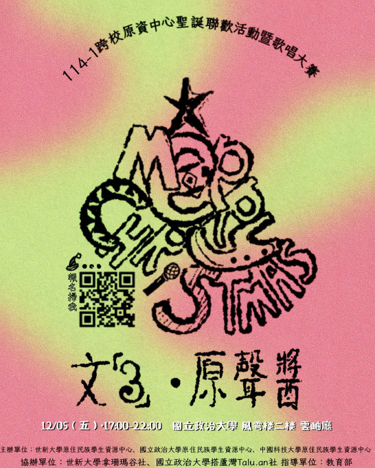 一、世新大學辦理114年12月5日(星期五)與國立政治大學、中國科技大學聯合舉辦聖誕聯歡活動暨歌唱大賽,藉由音樂競賽與節慶交流的平台,促進跨校原住民學生之互動與情誼。