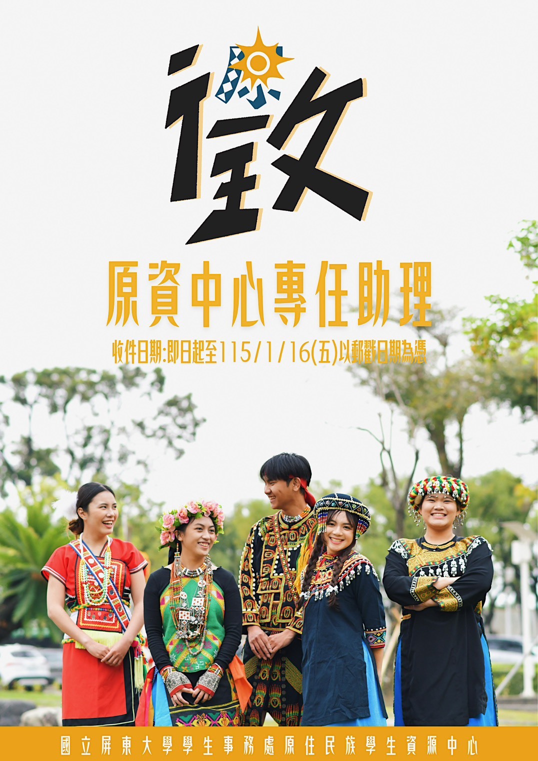【徵才】國立屏東大學學務處原住民族學生資源中心-徵聘專任助理